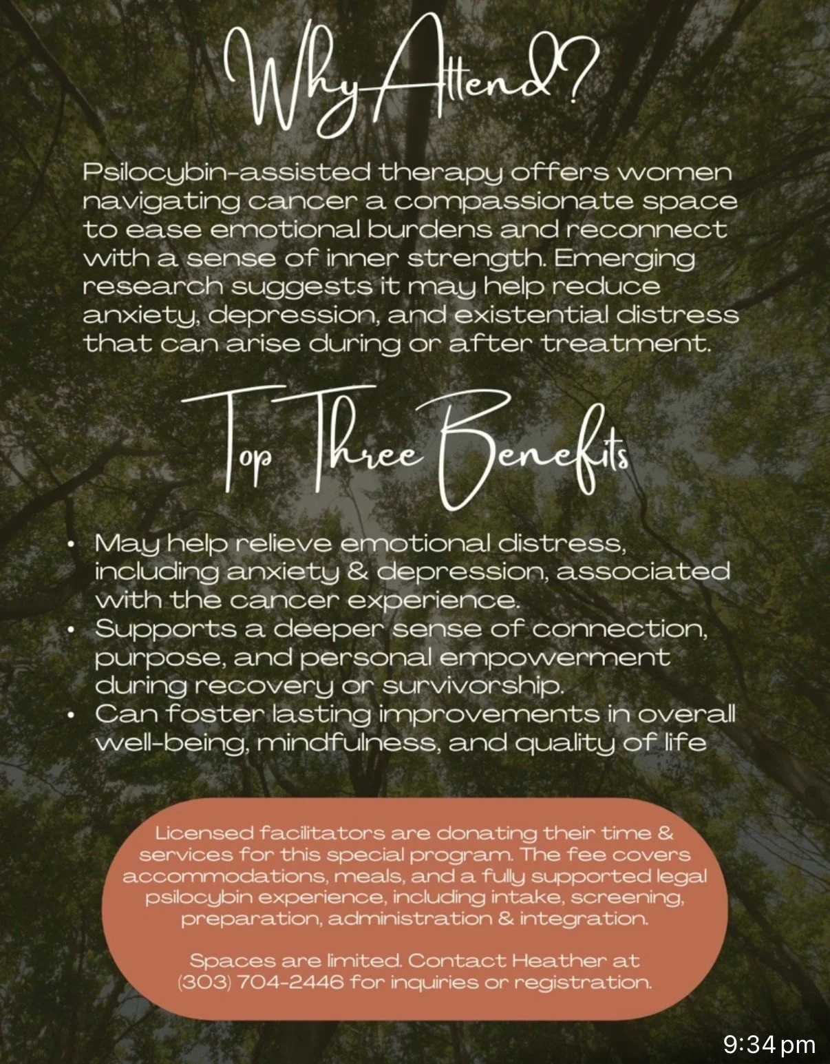 Research from Johns Hopkins has shown that a supported psychedelic experience with psilocybin can significantly reduce anxiety and distress in people with cancer. The combination of psychedelic assisted therapy in a supportive group setting greatly enhances the reduction in anxiety, increase a sense of connection and promotes the ability to cultivate greater calm and inner peace.